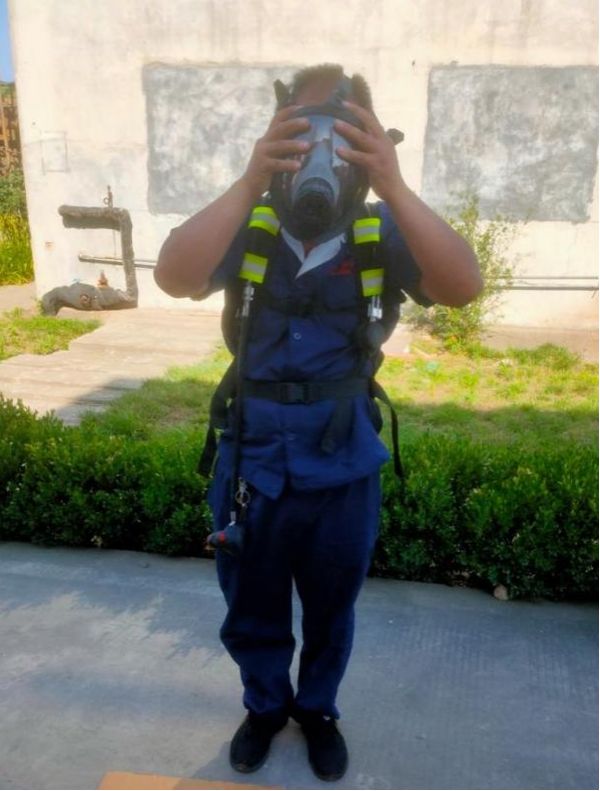 2、員工進(jìn)行實(shí)操,在規(guī)定時間內(nèi)正確佩戴正壓式呼吸器。